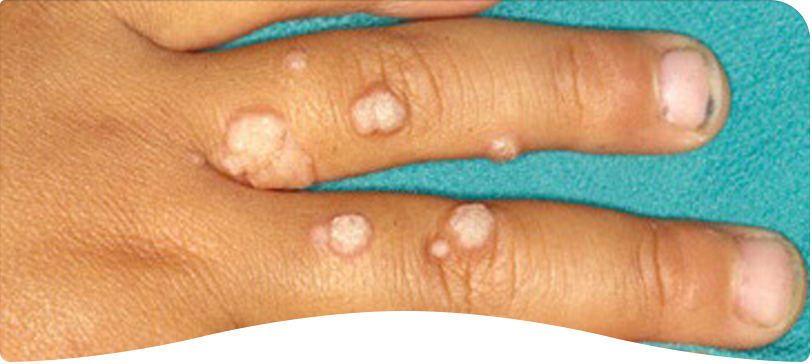 ウイルスによる感染症です。(麻酔テープを30 分ほど貼ってから)液体窒素で炎症を起こさせる方法などで治療を行います。プールのビート板やタオルなどで感染することがあります。